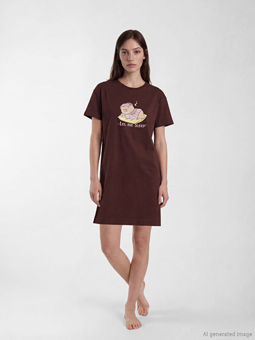 • Bisiklet Yaka Bask?l? Kad?n Gecelik