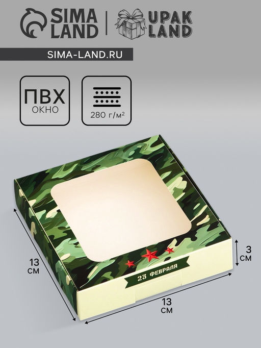 Эта очаровательная коробка идеальный способ выразить свои чувства и заботу близким на 23 февраля. Созданная для того, чтобы хранить в себе разнообразные вкуснейшие десерты, она станет символом вашей любви, дружбы и восхищения.