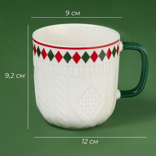 Кружка Доляна «Уютный Новый год», 370 мл, 12×9×9.2 см, фарфор, белая