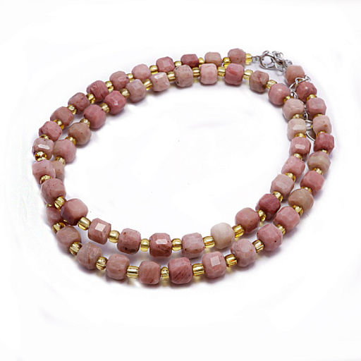Бусы из родонита Сердце прощения. Изящное колье длиной 45 см, где огранённые кубики родонита диаметром 4 мм чередуются с золотистыми бисеринами миниатюрная мозаика нежно-розовой теплоты и контрастных тёмных прожилок в солнечном обрамлении. Каждый кубик родонита, с чёткими гранями и полированной поверхностью, переливается оттенками от нежно-розового до насыщенного малинового с характерными чёрными или тёмно-коричневыми вкраплениями. Золотистый бисер из стекла мягко разделяет камни, смягчая контраст и добавляя украшению тёплого сияния. Надёжный замок карабин из ювелирного сплава обеспечивает комфортное ношение, а длина 45 см идеально ложится на ключицы, подчёркивая мягкую, исцеляющую женственность. Магические свойства родонита: Родонит камень эмоционального исцеления и сердечной мудрости. Его уникальная структура с тёмными прожилками на розовом фоне символизирует главную миссию камня: превращать эмоциональные раны в источник сострадания и мудрости. Родонит мягко залечивает старые душевные травмы, особенно связанные с предательством, потерей или непрощением, помогая отпустить обиду без подавления чувств. Камень балансирует сердечную чакру, укрепляя способность любить без страха и уязвимости, а также притягивает гармоничные отношения, основанные на взаимном уважении. Родонит развивает эмпатию без эмоционального выгорания он учит сострадать, оставаясь целостным. Традиционно камень ассоциируется с физическим здоровьем сердца и нервной системы, снимая стресс и восстанавливая внутреннее равновесие после потрясений. Геометрия кубиков усиливает трансформирующую способность камня: чёткие грани направляют энергию родонита на структурирование хаоса чувств, помогая превратить боль прошлого в мудрость настоящего. Эти бусы станут верным спутником в периоды эмоционального восстановления, добавят глубины романтическому образу и послужат тонким талисманом для тех, кто учится прощать других и себя. Материалы: родонит, ювелирный сплав, стеклянный бисер. Длина: 45 см. Замок: карабин. В магазине Аланкара можно недорого купить оптом бусы с родонитом, а также другие украшения из натуральных камней. Украшения из натуральных камней придадут внешности каждой женщины неповторимую яркость и индивидуальность. Аланкара подарки и сувениры оптом по доступным ценам. #натуральныекамни #украшенияоптом #бижутерияоптом #родонит #украшенияизродонита