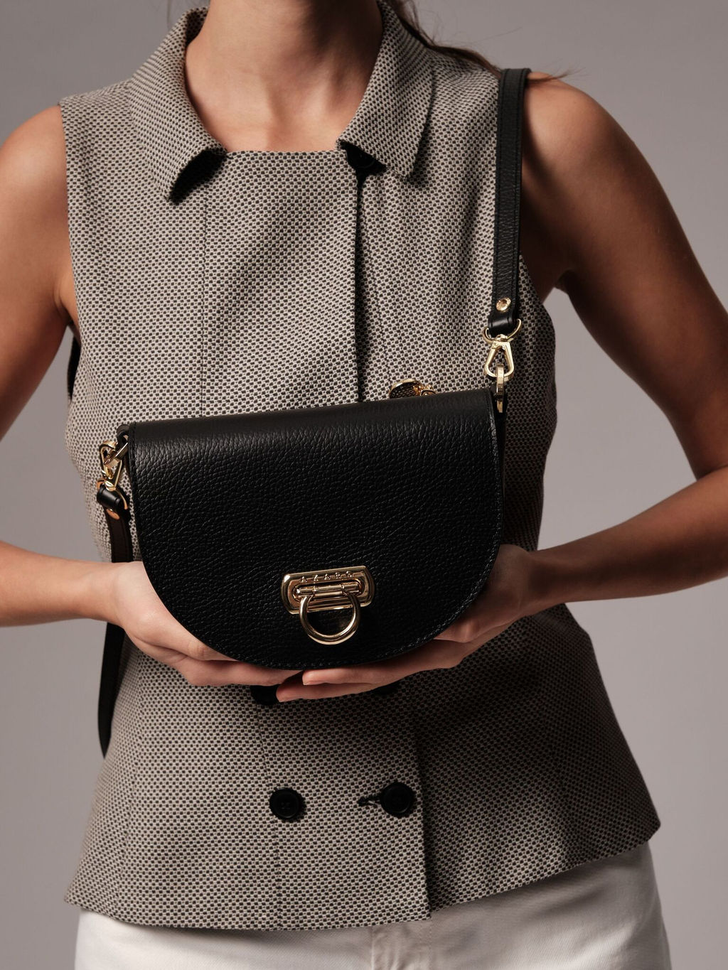 Детали: натуральная кожа, натуральная замша на внутренней стороне клапана, одно отделение на хлопковой водонепроницаемой подкладке, закрывается на декоративный металлический зажим-вертушку с логотипом бренда, 1 внешний накладной карман из натуральной кожи на молнии, удобный съемный регулируемый плечевой ремень. Женская кожаная сумка Azaro 31032 черный из натуральной зернистой кожи станет отличным дополнением вашего образа и надежным аксессуаром для повседневной жизни. Сумка выполнена в аккуратном и элегантном дизайне, что делает её универсальным вариантом как для ежедневного использования, так и для особых случаев. Сумка легко носится как кросс-боди через плечо, что обеспечивает комфорт во время ношения. Наличие регулируемого ремня добавляет удобства, позволяя вам подстроить его под свои предпочтения. Водонепроницаемая подкладка сбережет изделие от повреждений. Удобный замок обеспечивает быстрый доступ к нужным вещам. Использование натуральных материалов гарантирует не только стильный внешний вид, но и функциональность. Эта женская сумка из натуральной кожи Azaro 31032 отличная база для вашего гардероба. -- Характеристики -- Цвет: черный Материал: Натуральная кожа Бренд: Azaro Тип: Сумка на плечо, Сумка через плечо Страна-изготовитель: Россия Высота, см: 14 Ширина, см: 19 Глубина, см: 5 Материал подкладки: Хлопок Количество внутренних отделений: 1 Количество внешних карманов, шт: 1 Тип застежки: Зажим Формат А4: не вмещает Длина плечевого ремня, см: 120 Вес товара, г: 450 Ручки: На плечо;Одна лямка;Плечевой ремень Пол: женская коллекция Группа товара: Сумки