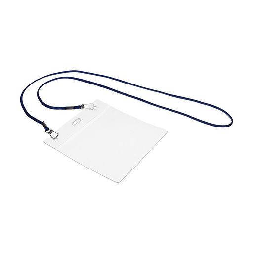 • Цена за 10 шт. Бейдж горизонтальный, внешний размер 112×109 мм, внутренний размер 102×90 мм, на синем шнурке 40 см