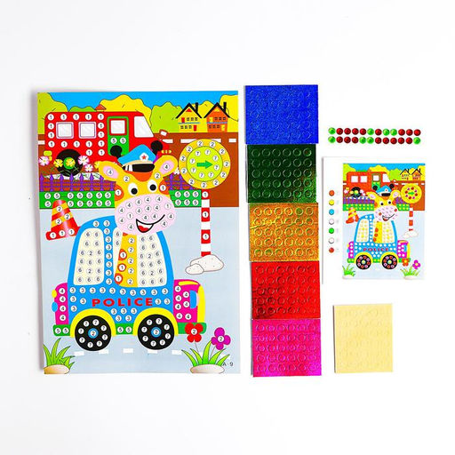• Аппликация круглыми стразами и EVA «Жираф в машине»