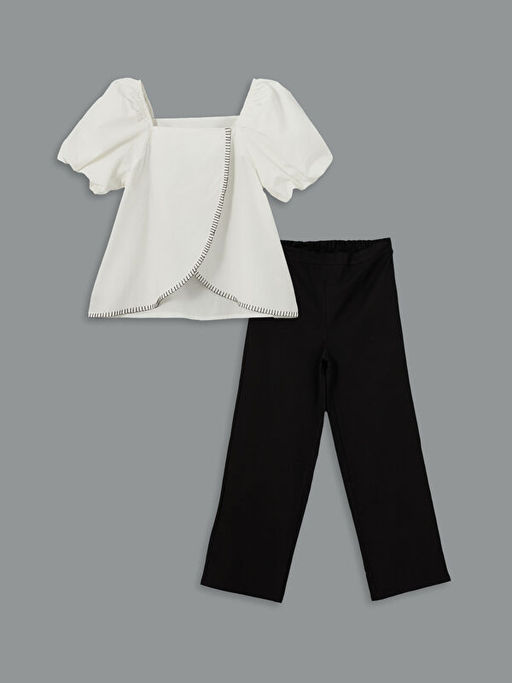 Kare Yaka K?z ?ocuk Bluz ve Pantolon
