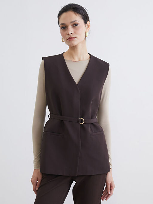 • V Yaka Kemerli Kad?n Klasik Yelek