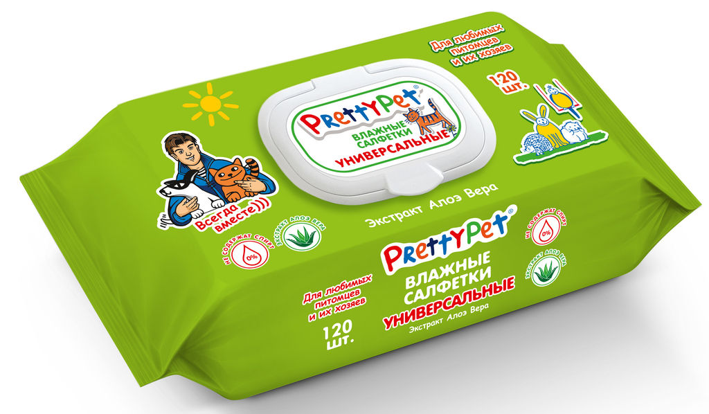 Влажные салфетки универсальные для лап, глаз и ушей 120 шт с ароматом Алоэ 4689089621748