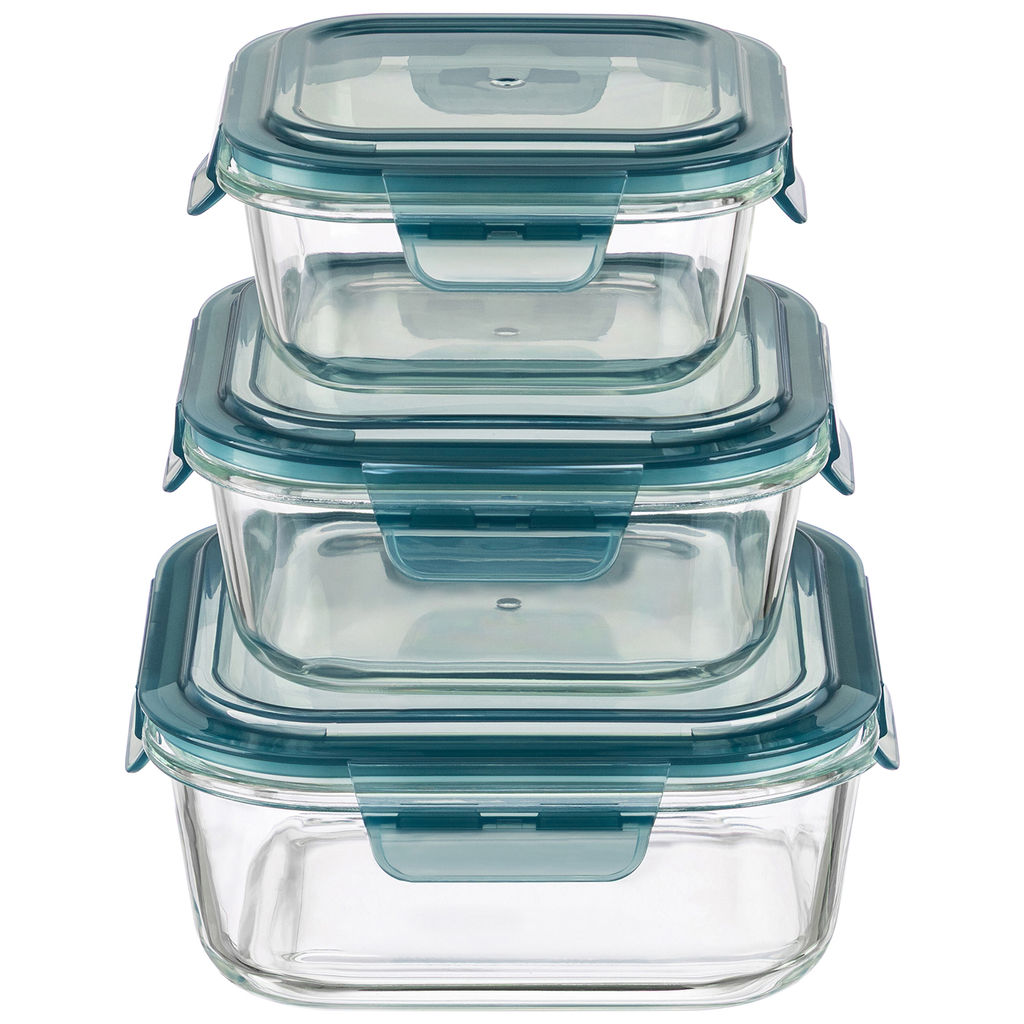 Набор 3 квадратных контейнеров 520 мл, 800 мл, 1,2 л с пластик. крышк. с защел., с сил.уплотн