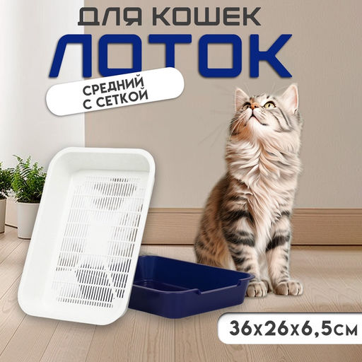 Туалет средний с сеткой 36×26×6.5 см, лоток синий/сетка белая