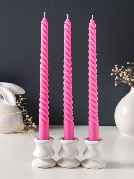 Свеча витая 25 см (набор 3 шт) 57 гр, 5 ч, цв. розовый