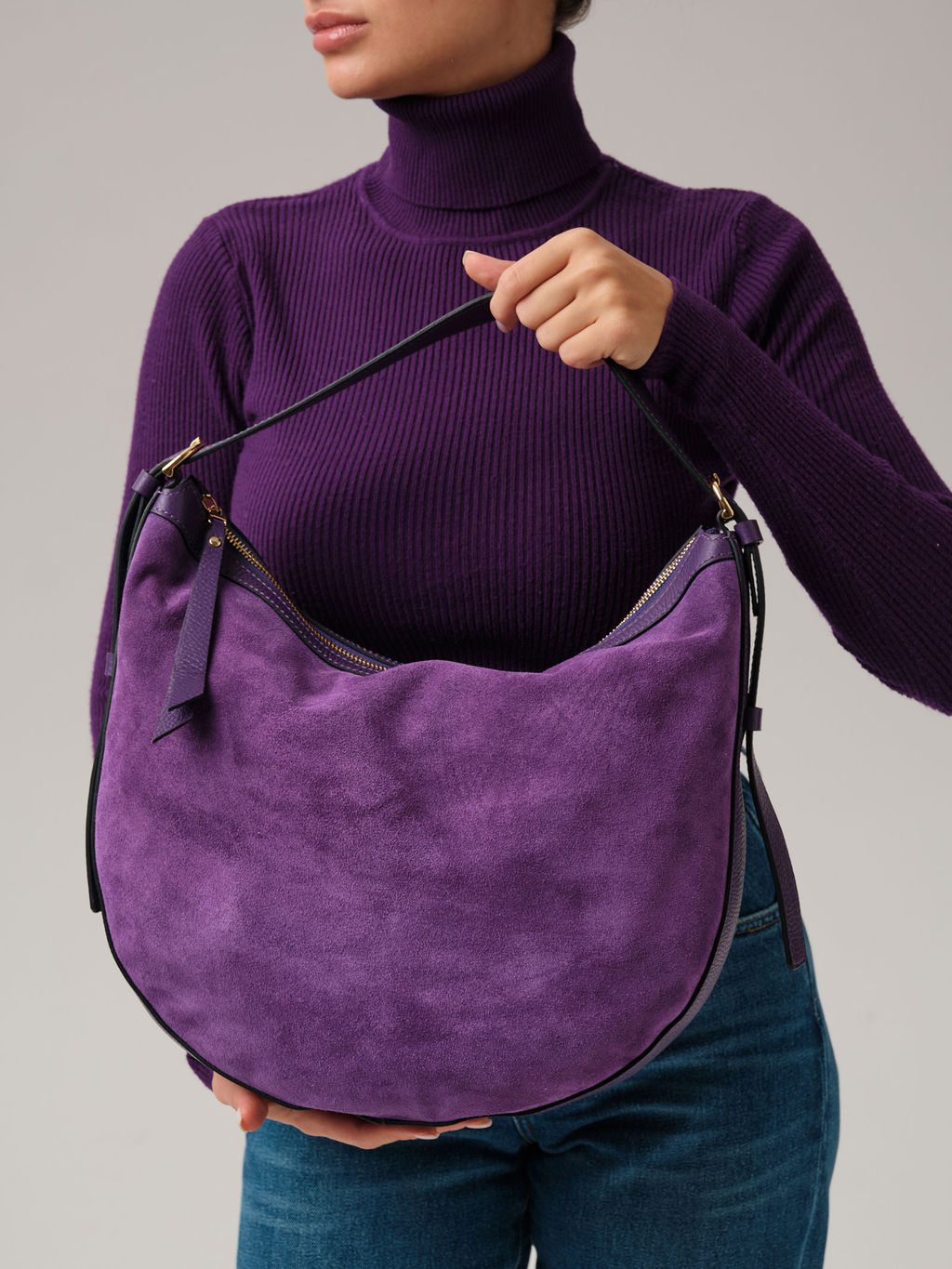 Детали: натуральная замша, натуральная кожа, 1 внутреннее отделение на хлопковой водонепроницаемой подкладке, 1 внутренний закрытый карман на молнии, 1 внутренний открытый карман, застежка на металлическую молнию с пуллером из натуральной кожи.­