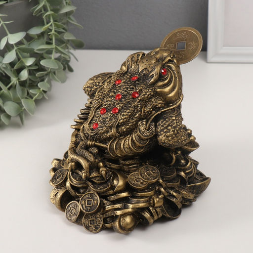 • Нэцкэ фигурка «Денежная жаба с монетой на горе монет», полистоун, под бронзу, 16.2×19×16.5 см