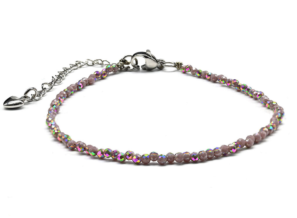 • Браслет из циркона шарик граненый 2мм цвет сиреневый хамелеон, 19см