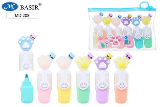 • Набор текстмаркеров мини Basir "Лапки" 6шт. (MD-208) пастельные цвета, колпачки с фигурками