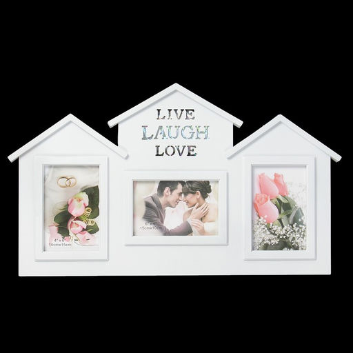 • Фоторамка - коллаж на 3 фото 10?15 см Дом - жизнь. смех, любовь, пластик, белая, 33?54.5 см