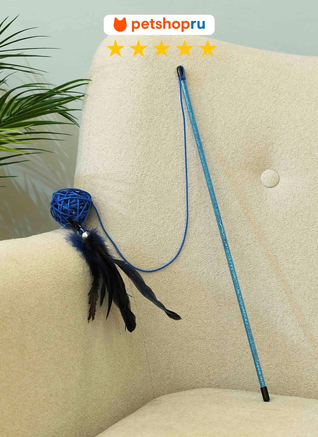 • Игрушка для кошек, дразнилка с мячом из лозы и пером, 46 см. PS125