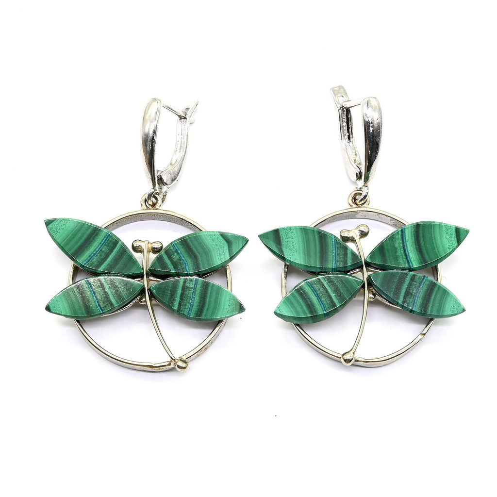 • Серьги малахитовые "Стрекозы" 32*26мм
