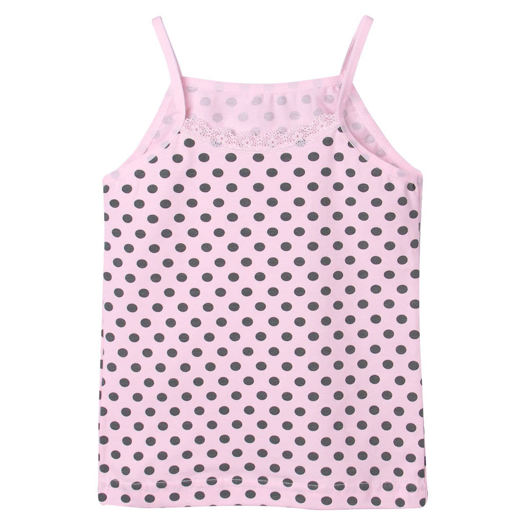 Майка с узкими бретелями, декорированная принтом и кружевом.