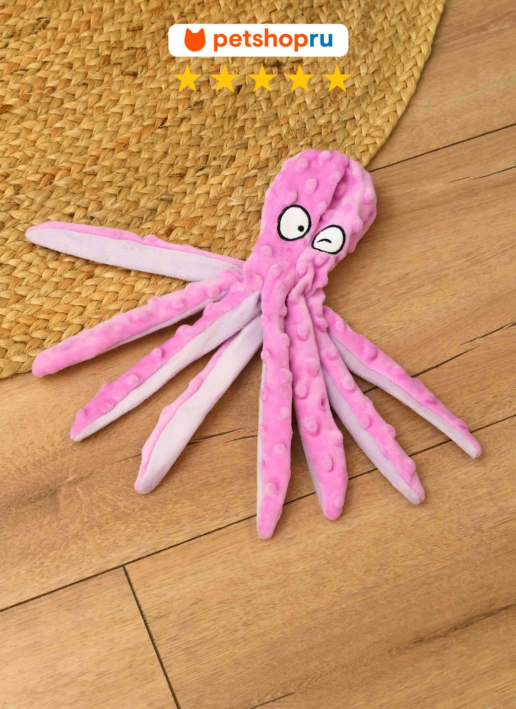 • Игрушка для собак, мягкий шуршащий осьминог с пищалкой, 30 см., цвет в ассортименте PS020