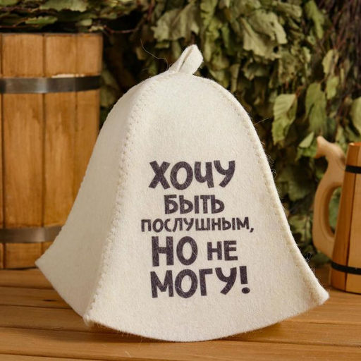 • Шапка для бани и сауны, с принтом «Хочу быть послушным, но не могу», полиэфир 20%, шерсть 80%, «Добропаровъ»