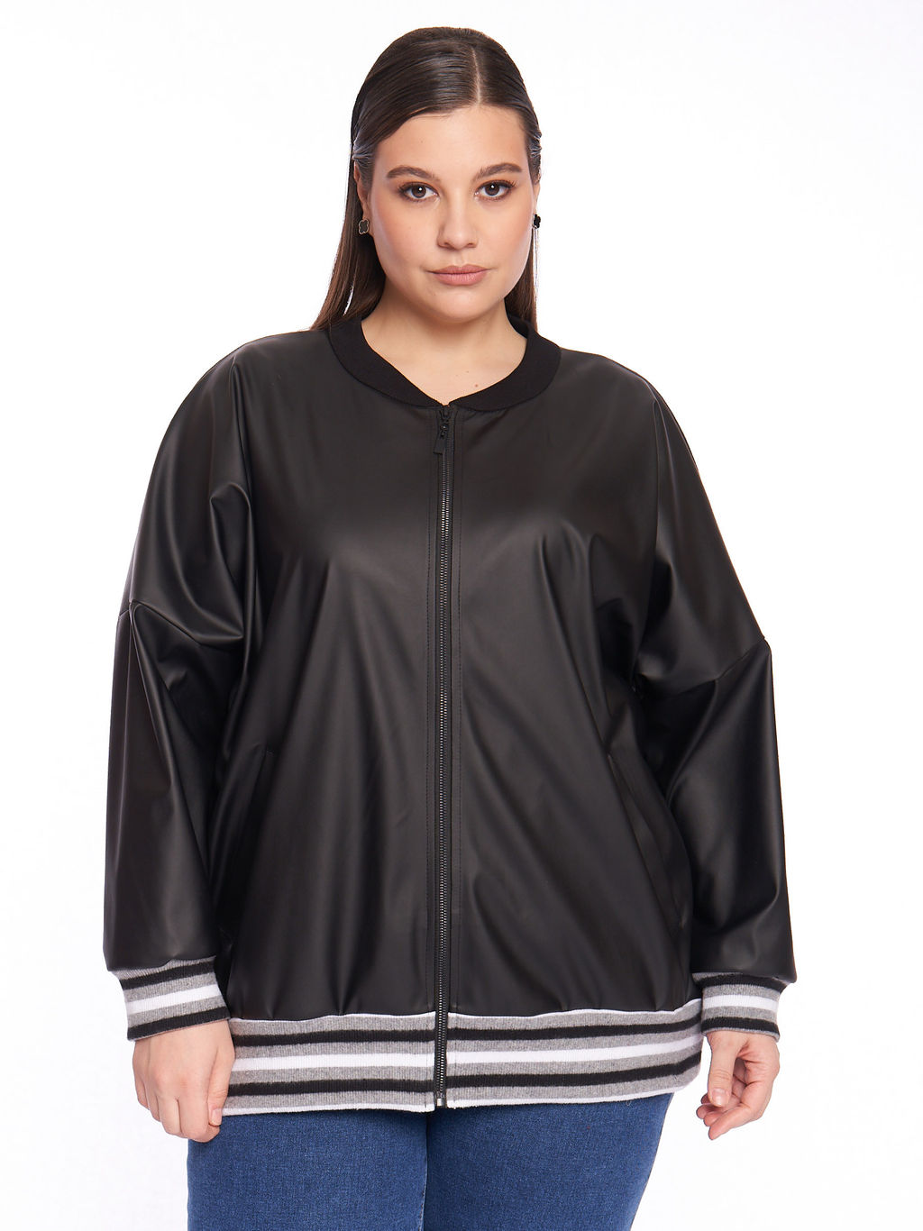 Описание товара Бомбер оверсайз из экокожи чёрного цвета