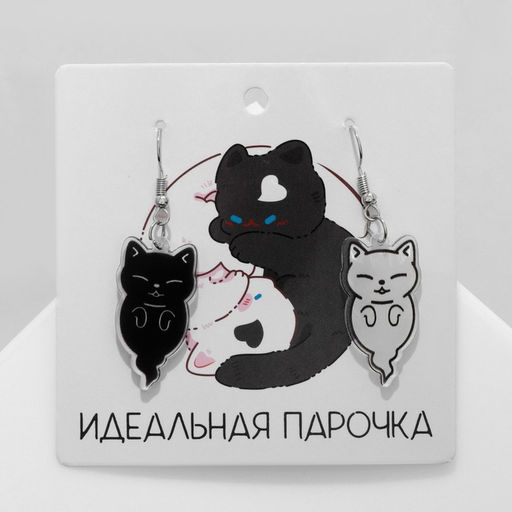• Серьги акриловые «Котики», духи, чёрно-белые