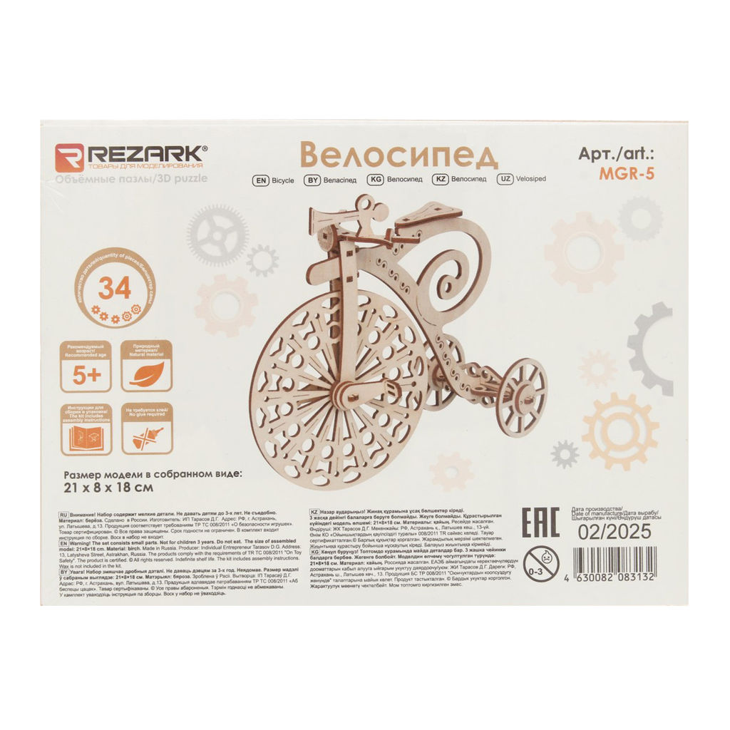 REZARK MGR-5 Серия Механика Пазл 3D 34 элемент. Велосипед