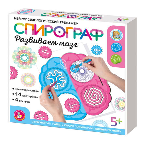 • Игра настольная "Спирограф. Развиваем мозг": тренажер-основа, 14 шестеренок, 4 стилуса (05880) 5+, "Десятое королевство"