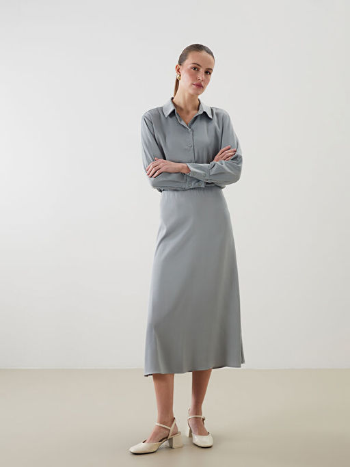 Standart Fit D?z A Kesim Saten Kad?n Etek