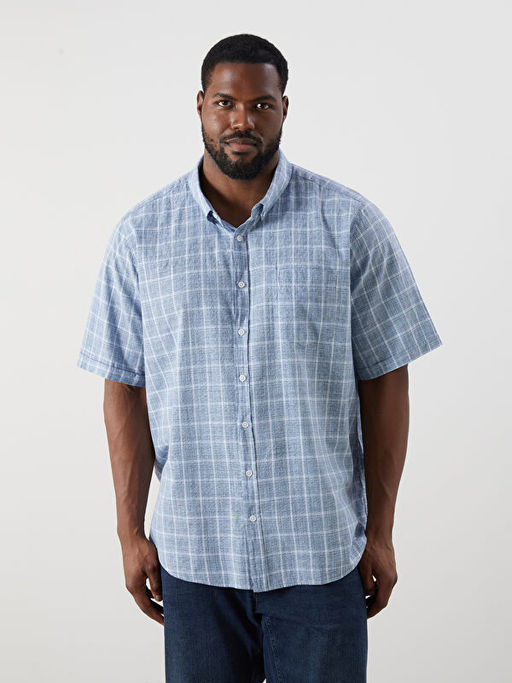 B?y?k Beden Regular Fit K?sa Kollu Ekose Erkek G?mlek