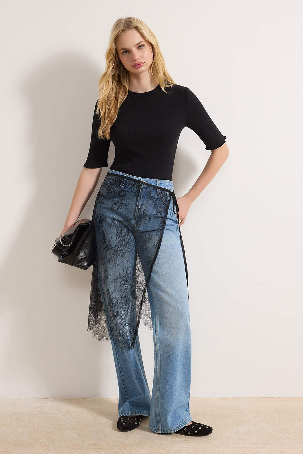 • Siyah Fitted/Vucuda Oturan Fitilli Esnek Orme Bluz TWOSS23BZ00025