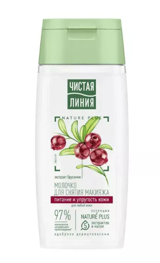 Эксперты бренда Чистая Линия разработали молочко для снятия макияжа, которое подходит для всех типов кожи, и действует сразу в нескольких направлениях: деликатно снимает макияж, препятствует потере упругости, увлажняет и питает кожу. В составе продукта 97% компонентов натурального происхождения*! Эссенция NATURE PLUS это пять экстрактов и масел для ухода за кожей. Экстракт вербены восстанавливает баланс увлажненности и тонизирует. Экстракт пиона и льняное масло успокаивают и смягчают. Масло миндаля содержит жирные кислоты, витамины Е и F, питает и выравнивает поверхность кожи. Ферментированное оливковое масло питает и защищает от преждевременного старения. Экстракт брусники препятствует потере упругости кожи.