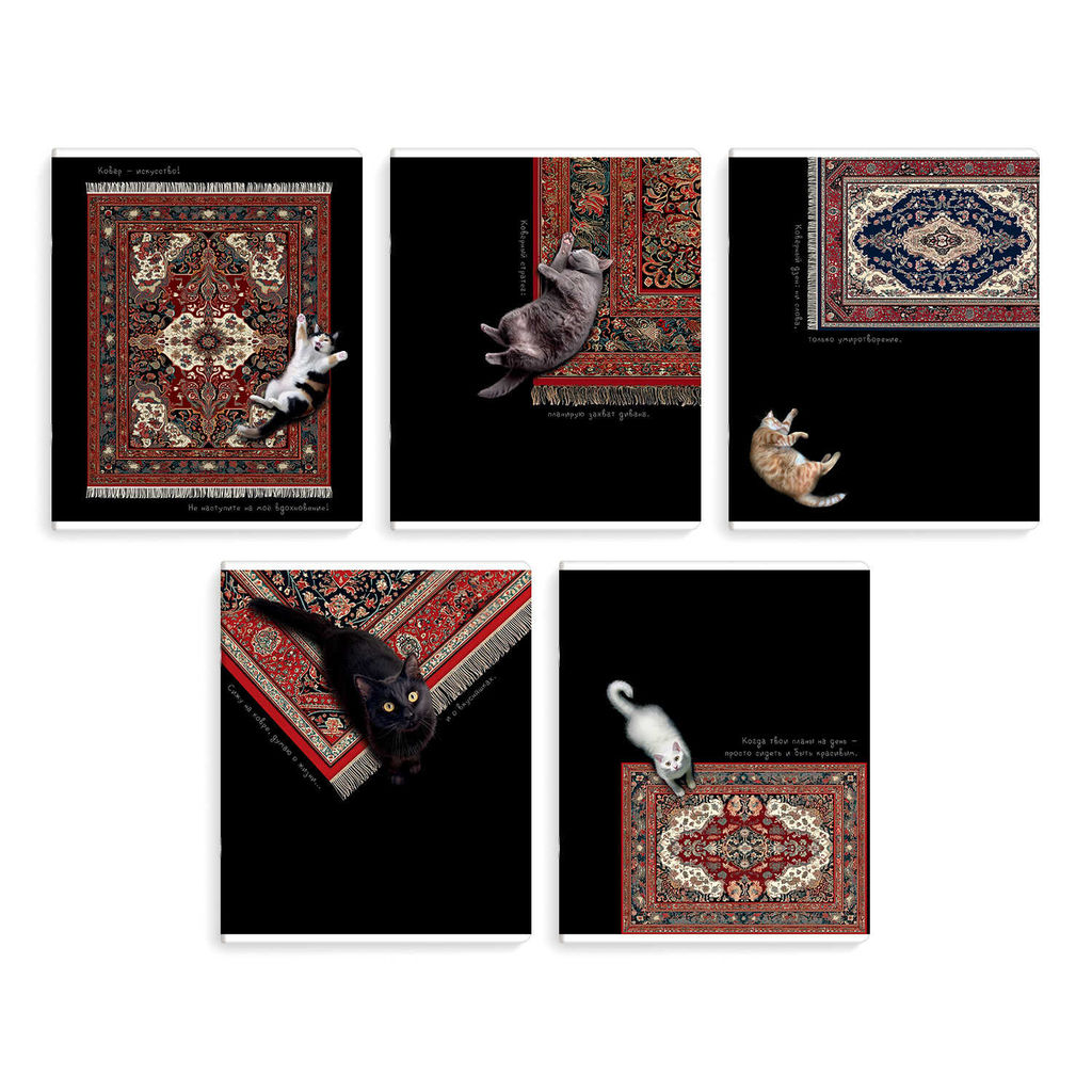 Тетрадь, 48 л, клетка, арт. 74232/ 5 КОТЫ И КОВРЫ /А5+, мягкий переплёт (2 скобы), мелованный картон