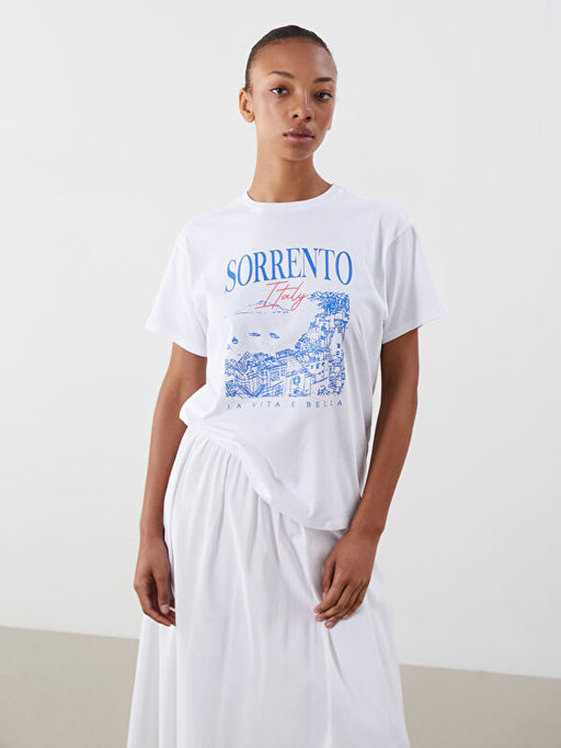 Bisiklet Yaka Italy Bask?l? Kad?n Ti??rt