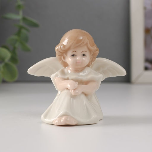 • Сувенир керамика "Девочка-ангел в белом платье с рюшами сидит" 7,5х5,5х6,5 см