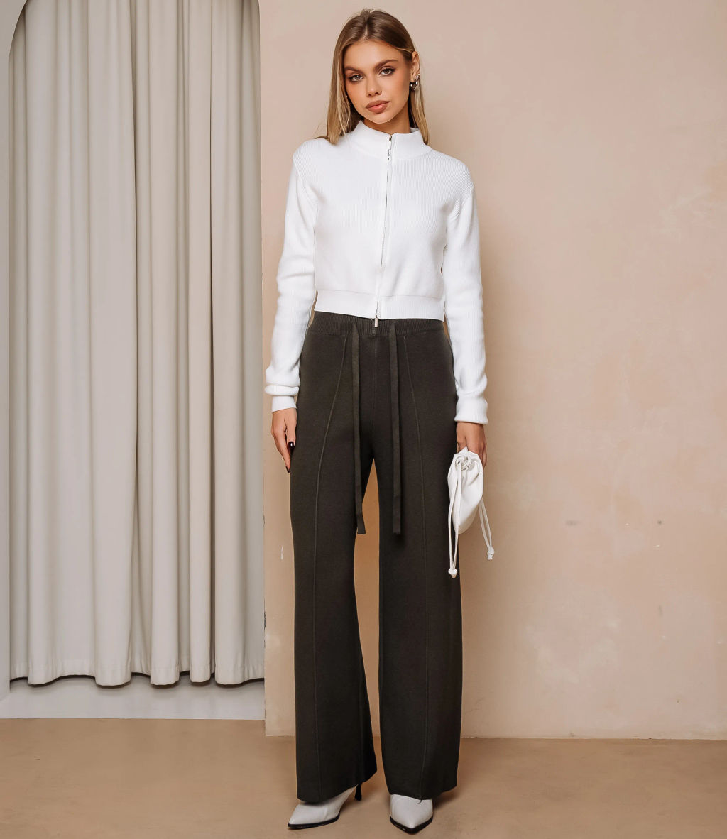 Брюки это вещь, которая подчеркивает привлекательность и универсальность гардероба ваших покупательниц. Брюки выполнены в свободном прямом крое с широкими штанинами, длина до пола с лёгким запасом у низа, создающим прямой удлинённый силуэт. Талия средней посадки на широком вязаном эластичном поясе с внутренней кулиской и декоративными, но функциональными шнурками, свисающими спереди. Передняя часть модели оформлена вертикальными рельефными швами, проходящими от пояса вниз по центру каждой штанини, что визуально удлиняет ноги и придаёт изделию структурированность. Боковые карманы врезного типа аккуратно вшиты в боковые швы, без выступающих элементов; шаговый шов и все внешние швы выполнены декоративной прострочкой, подчёркивающей геометрию кроя. Для пошива использована ткань 65% хлопка, 35% полиэстера, отличающаяся отменным качеством. Даже после многочисленных стирок изделие не утратит первоначальной привлекательности и сохраняет форму. Цвет соответствует фотографии на сайте и отличается насыщенностью, что облегчает продажу и удовлетворяет ожидания покупательниц. Мы представили таблицу размеров на странице, чтобы вы могли легко подобрать ассортимент под потребности клиентов и избежать возвратов. Производитель уделяет внимание современным, стильным решениям и качественной отделке, что делает эту модель выгодной для оптовых закупок. Установленная оптовая цена является адекватной и обеспечивает хорошую маржинальность при продаже в магазинах. Рекомендуем включить брюки в ассортимент они привлекут покупательниц, ценящих сочетание качества и презентабельного внешнего вида! Рост модели 168 см., 89-63-90. Вы можете заказать онлайн презентацию на интересующие Вас модели. Наши менеджеры свяжутся с Вами и проведут индивидуальную видеотрансляцию, помогут составить заказ и ответят на Ваши вопросы. -- Характеристики -- Цвет: хаки Пол: Женский Страна производитель: Китай Сезон: Осень Материал: Хлопок, Полиэстер