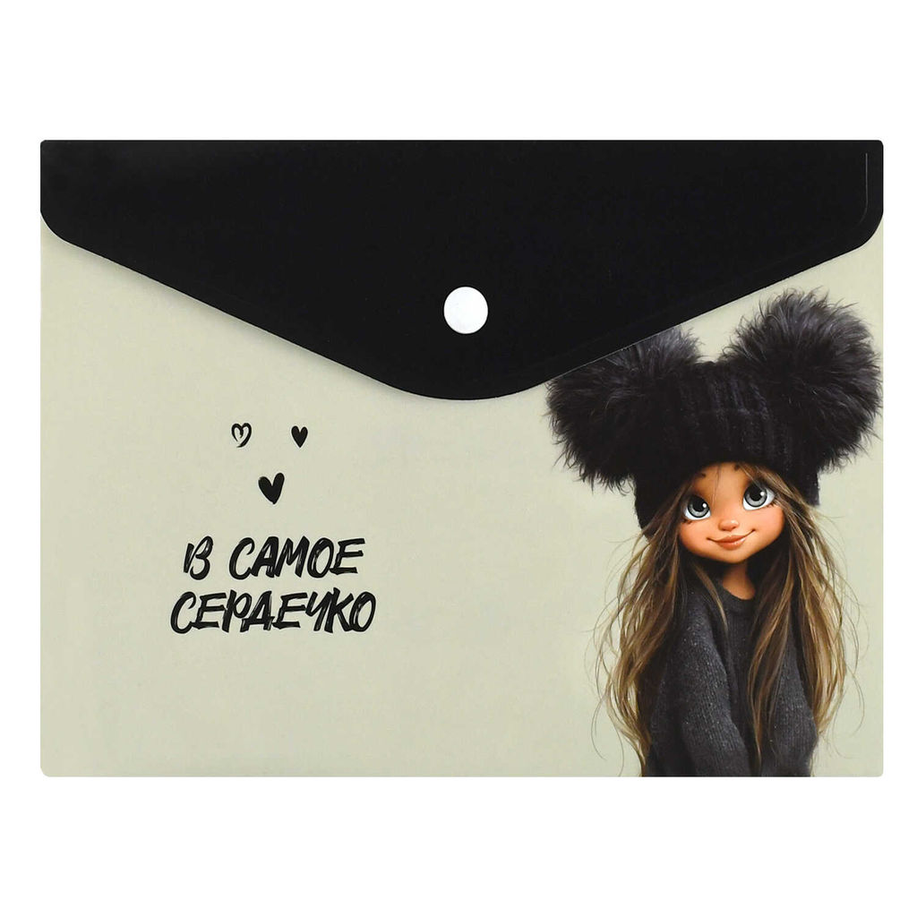 Папка для школьных тетрадей пластиковая Феникс+, арт. 72378/ 12 ДЕВЧОНКА В ШАПКЕ (полипропилен, формат А5, 24x17 см, 1 отделение (-я), кнопка, УФ-печать)