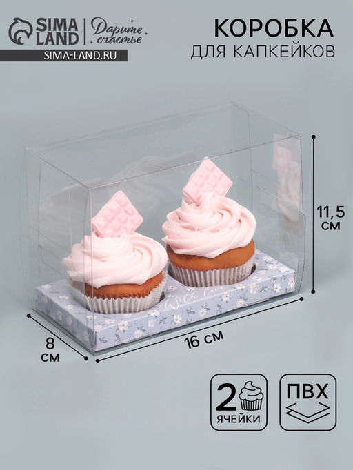 Размер одной ячейки, без учёта выемки под пальцы, 6 см. Вид упаковки: Для капкейков. Форма: Прямоугольная. Плотность, г/м: 280. Длина, см: 16. Ширина, см: 8. Высота, см: 11.5. Вместимость, шт.: 2. Тематика: Цветочно-растительная. Тематика праздника: Универсальная тематика. Вид: Кондитерские коробки. Вид еды: Для пирожных. Бесплатная доставка: Да. Наша разработка: Да. Размеры товара: 8/11.5/16.