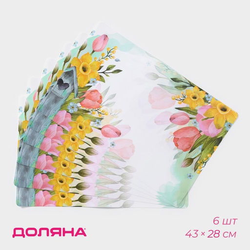 Позвольте себе порадовать свой стол с набором сервировочных салфеток «Акварель» от Доляна — настоящим искусством сервировки! Каждая из шести салфеток размером 43 х 28 см украшена ярким цветочным рисунком, который освежит ваш интерьер и создаст неповторимую атмосферу радости и уюта.Эти салфетки выполнены из высококачественного ПВХ, что делает их не только стильными, но и практичными. Они идеально подходят для праздничных ужинов, особенно в такие чудесные дни, как 8 Марта. Их многообразие цветов и элегантный дизайн сделают любой стол центром внимания, а ваши гости по достоинству оценят внимание к деталям.Яркий декоративный элемент: цветочная тематика добавляет ярких красок в любое ваше мероприятие, подчеркивая атмосферу праздника.Удобство в использовании: легко очищаются при помощи влажной губки или тряпки, что обеспечивает вам дополнительное время для наслаждения общением.Долговечность: ПВХ-материал делает салфетки устойчивыми к повреждениям, позволяя использовать их много раз без потери качества.Компактность: в наборе 6 салфеток, что позволяет вам легко хранить их и заменять по мере необходимости.Стильный акцент на вашем столе: прямоугольная форма идеально подходит для сервировки, создавая гармонию в оформлении.Салфетки «Акварель» — это не просто аксессуар, а воплощение вашего стиля и уюта. Они помогут вам создать поистине незабываемую атмосферу за столом, где каждый прием пищи станет настоящим праздником. Набор: Да. Размер, см: 43 х 28. В наборе, шт.: 6. Тематика: Цветочно-растительная. Рисунок: Да. Тематика праздника: 8 Марта. Рекомендации по уходу: Чистка влажной губкой/тряпкой. Можно мыть в посудомоечной машине: Нет. Особенности: Противоскользящие. Фактурные: Нет. Бесплатная доставка: Да. Наша разработка: Да. Размеры товара: 28/0.1/43. Примечание: Оттенок данного товара может незначительно отличаться от фото/видеоизображения (в зависимости от настроек яркости вашего экрана)..