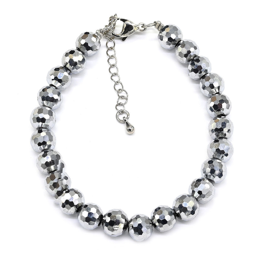 Браслет из циркона шарик гр.8мм цв.серебристый, 18см
