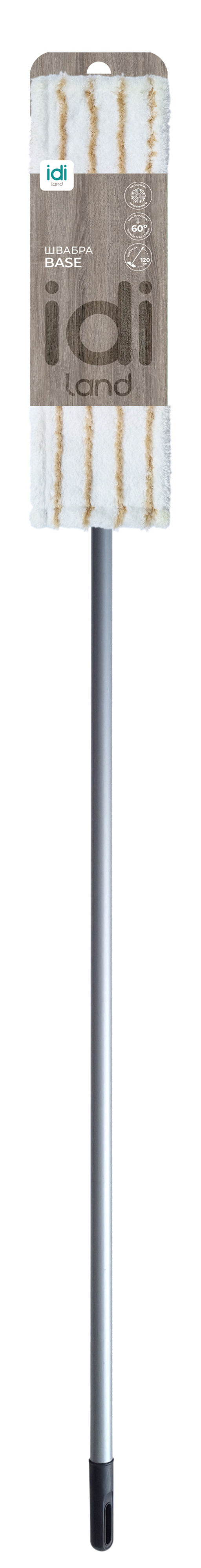 Швабра Base это идеальный инструмент для поддержания чистоты в вашем доме, на даче или в офисе! Основные характеристики: - Платформа: Оснащена плоской маневренной платформой на шарнире,  что позволяет легко убирать в труднодоступных местах. - Рукоятка: Металлическая рукоятка длиной 120 см имеет антискользящее покрытие для удобства использования. В ручке предусмотрено отверстие для подвешивания, что упрощает хранение швабры. - Сменная насадка: Насадка выполнена из плотной микрофибры, что делает её идеальной для ежедневной влажной уборки. Она подходит для всех видов напольных покрытий. - Удобство ухода: Насадку можно стирать в стиральной машине при температуре не выше 60 градусов, что обеспечивает её долговечность и простоту в обслуживании. Швабра  Base это надежный и универсальный помощник в уборке, который сделает процесс легким и эффективным!­
