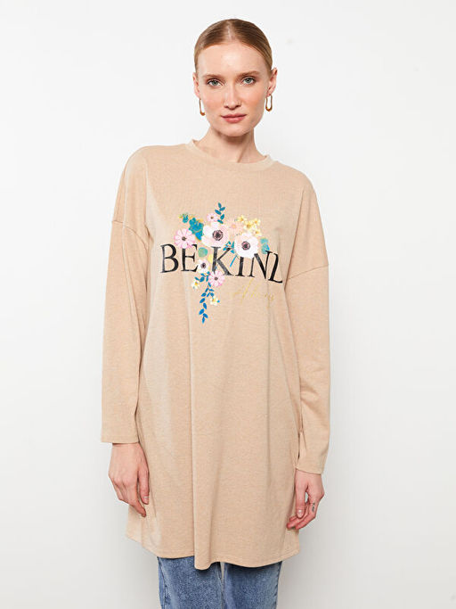 Bisiklet Yaka Bask?l? Uzun Kollu Kad?n Tunik