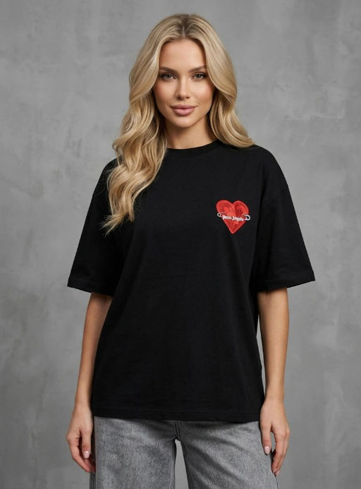 K13678 Футболка с вышивкой OVER SIZE (хлопок) ЧЕРНЫЙ