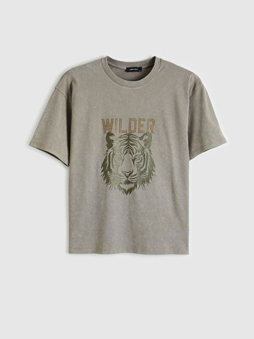 Kaplan Bask?l? Oversize Kad?n Ti??rt