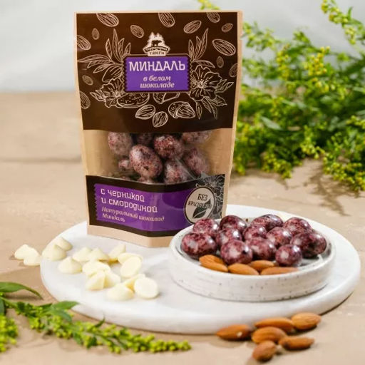 • Драже Миндаль в белом шоколаде с смородиной и черникой крафт-пакет 80г НОВИНКА