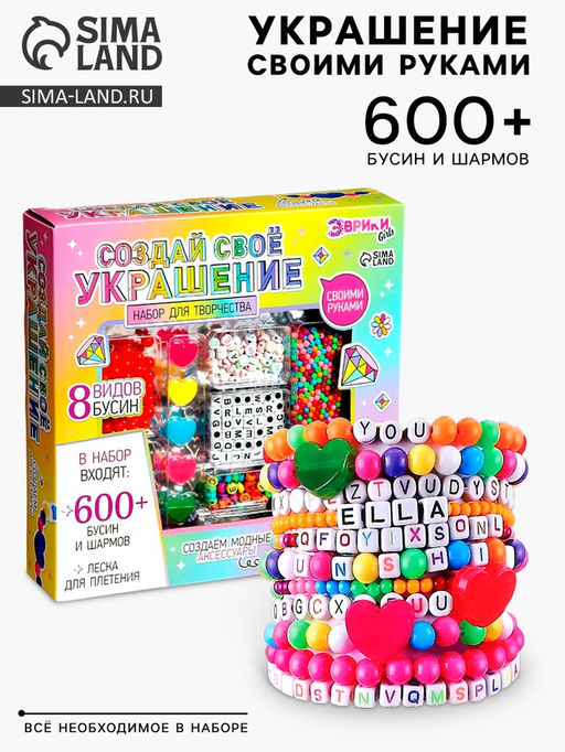 • Набор для творчества Создай своё украшение, 600 бусин и шармов
