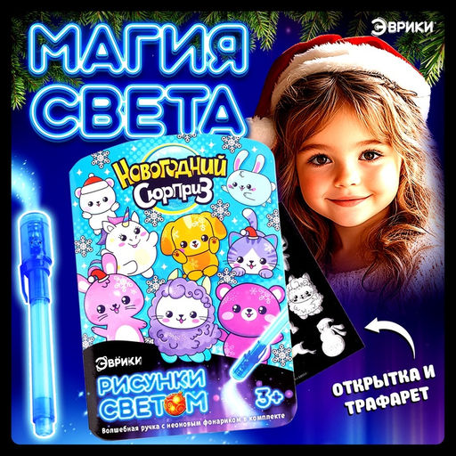 Рисование светом — волшебный процесс, который захватывает и детей, и взрослых. Специальный планшет из набора «Новогодний сюрприз» превращает обычную темноту в яркий холст, а светящийся маркер оставляет на нём сказочные узоры. Это отличное развлечение для уютных зимних вечеров, подарков и творческих экспериментов.Что внутриСветящийся планшет для рисования.Специальная ручка.Трафареты с новогодними мотивами.Инструкция с идеями для творчества.Как это работаетЛучи света оставляют на планшете яркий след, который постепенно исчезает. Чем темнее в комнате, тем ярче рисунки! Можно создавать сказочные пейзажи, загадочные силуэты или весёлые надписи — без бумаги, красок и пятен.Для когоЭтот набор понравится детям, которые любят рисовать, родителям, ищущим необычные и полезные игрушки, а также всем, кто хочет создать праздничное настроение без лишних усилий. Отличный выбор для подарка на Новый год! Для кого: Унисекс. Возраст: От 3 лет. Тематика праздника: Новый год. Типоразмер батареек: LR44 (V13GA, AG13, LR1154, SR44). Назначение: Для рисования светом. Тематика набора: Опыты. Бесплатная доставка: Да. Наша разработка: Да.
