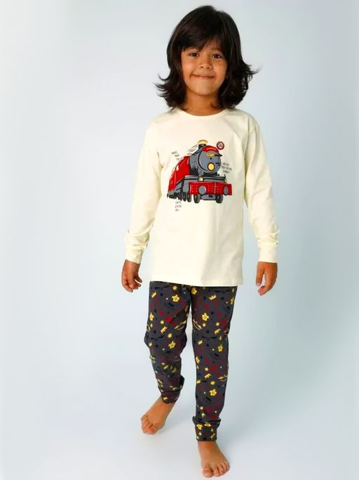 Пижама для мальчика с оригинальным принтом. Выполнена из натурального, гипоаллергенного материала - кулирка. Идеальный выбор для дома или детского сада.