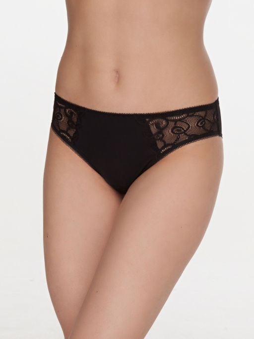 Трусы-слип co средней линией талии. Кружевные вставки на передней детали трусиков. Выполнены из эластичного трикотажного полотна и эластичного кружева.