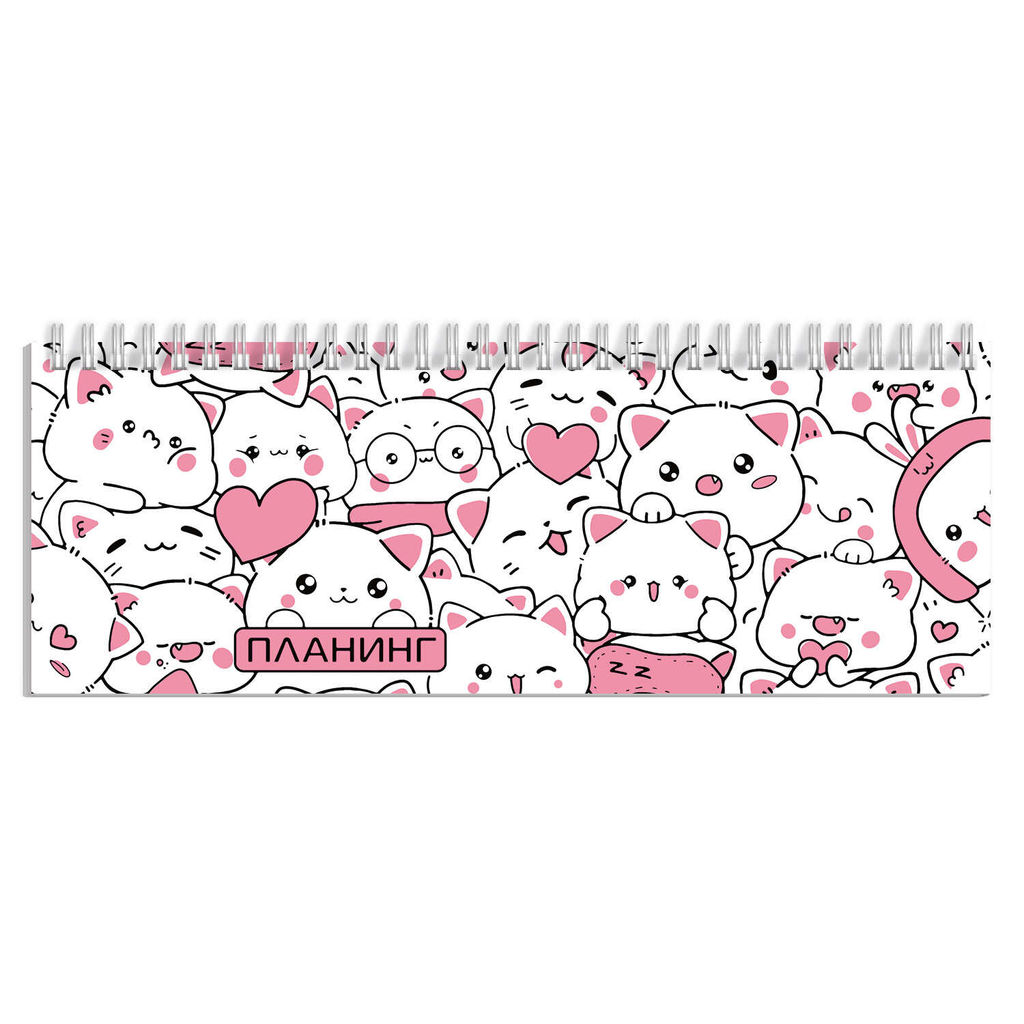 Планинг недатированный арт. 68102 ЧИБИ-КОТЯТА / 290х100 мм, 64 л., гребень по длинной стороне, полноцветная печать, глянцевая ламинация. Блок - белый офсет, 65 г/м?, печать в одну краску,