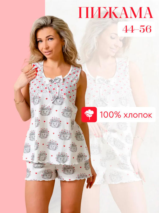 Пижама ночная женская модель 440 выполнена из трикотажа (кулирка) 100% хлопок, что обеспечивает максимальный комфорт и мягкость на ощупь. Кулирная гладь - это тип ткани, который характеризуется своей легкостью и прочностью. Пижама включает в себя шорты и майку, что позволяет создать стильный и удобный комплект для домашнего отдыха. Размерный ряд пижамы включает в себя размеры от 44 до 56, что позволяет выбрать подходящий вариант для любой фигуры. Цвет пижамы - белый, что делает ее легкой и воздушной. Пижама ночная женская модель 440 - это отличный выбор для тех, кто ценит комфорт, качество и стиль.­